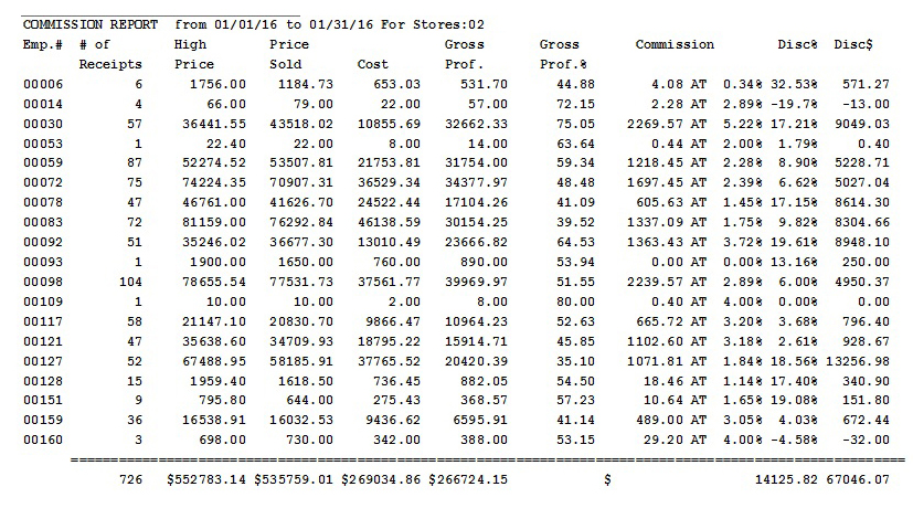 You can track employee productivity and compare with other employees whether you pay commissions or not. You can compare how salespeople sell in different departments so you can know who is best at selling different types of jewelry and who needs help.